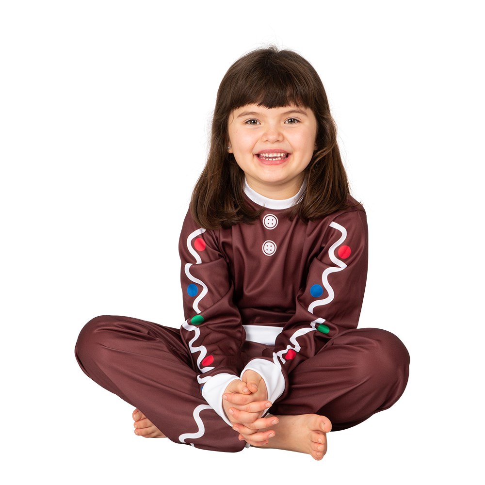 Bedårande pepparkaksdräkt till den allra mysigaste tiden på året. Denna maskeraddräkt har många härliga mönster och juliga detaljer, vilket är perfekt till alla luciatåg och julmys. Dräkten finns i flera olika storlekar och är gjord i polyester.