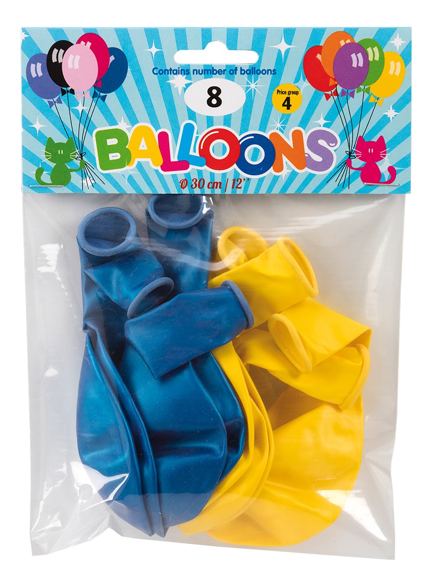 BALLOONS 12" METALLIC BLUE/YELLOW 8-P