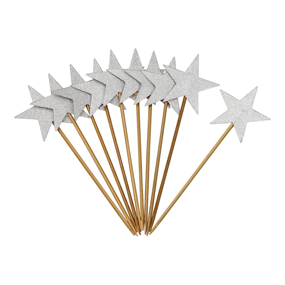 Dekorerar festens tårta eller mat med dessa party picks. Säljs i 10-pack. Höjd: 11,5cm, Bredd: 4 cm Material på Stjärnan: FSC papper