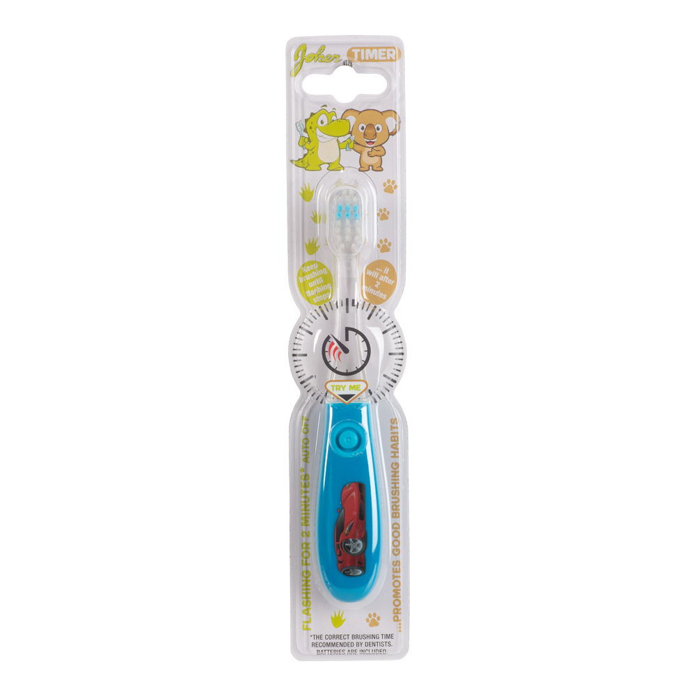 Fortsätt borsta tills blinkandet slutar. Tandborste anpassat för barn 3-6år. Med blinkande lampa i 2 minuter för att lära barnen att borsta tänderna längre och va mer nogranna. Tandläkaren rekommenderar att man byter tandborste var 3e månad. Endast till för att borsta tänderna med i vuxet sällskap.