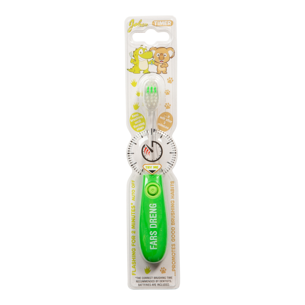 Fortsätt borsta tills blinkandet slutar. Tandborste anpassat för barn 3-6år. Med blinkande lampa i 2 minuter för att lära barnen att borsta tänderna längre och va mer nogranna. Tandläkaren rekommenderar att man byter tandborste var 3e månad. Endast till för att borsta tänderna med i vuxet sällskap.