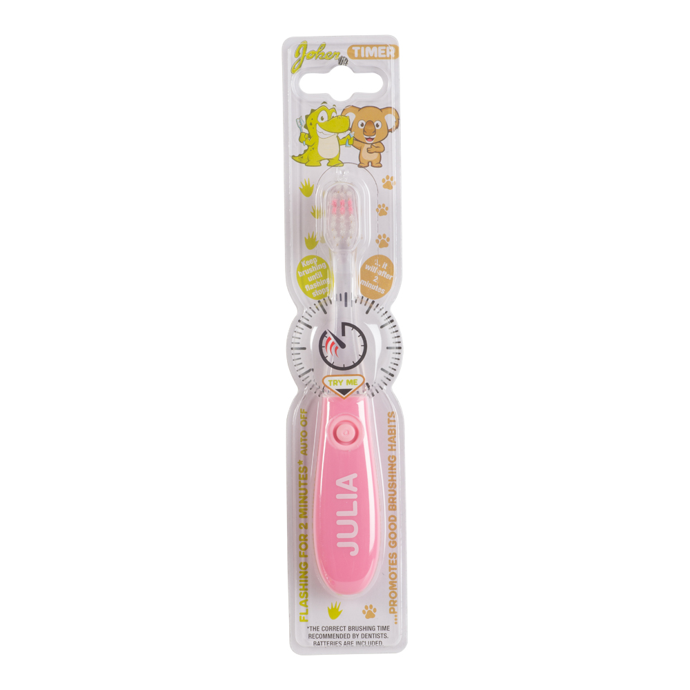 Fortsätt borsta tills blinkandet slutar. Tandborste anpassat för barn 3-6år. Med blinkande lampa i 2 minuter för att lära barnen att borsta tänderna längre och va mer nogranna. Tandläkaren rekommenderar att man byter tandborste var 3e månad. Endast till för att borsta tänderna med i vuxet sällskap.
