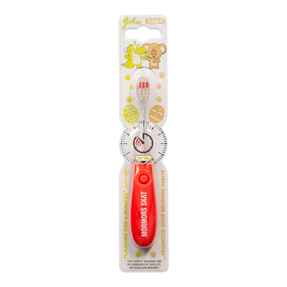 Fortsätt borsta tills blinkandet slutar. Tandborste anpassat för barn 3-6år. Med blinkande lampa i 2 minuter för att lära barnen att borsta tänderna längre och va mer nogranna. Tandläkaren rekommenderar att man byter tandborste var 3e månad. Endast till för att borsta tänderna med i vuxet sällskap.