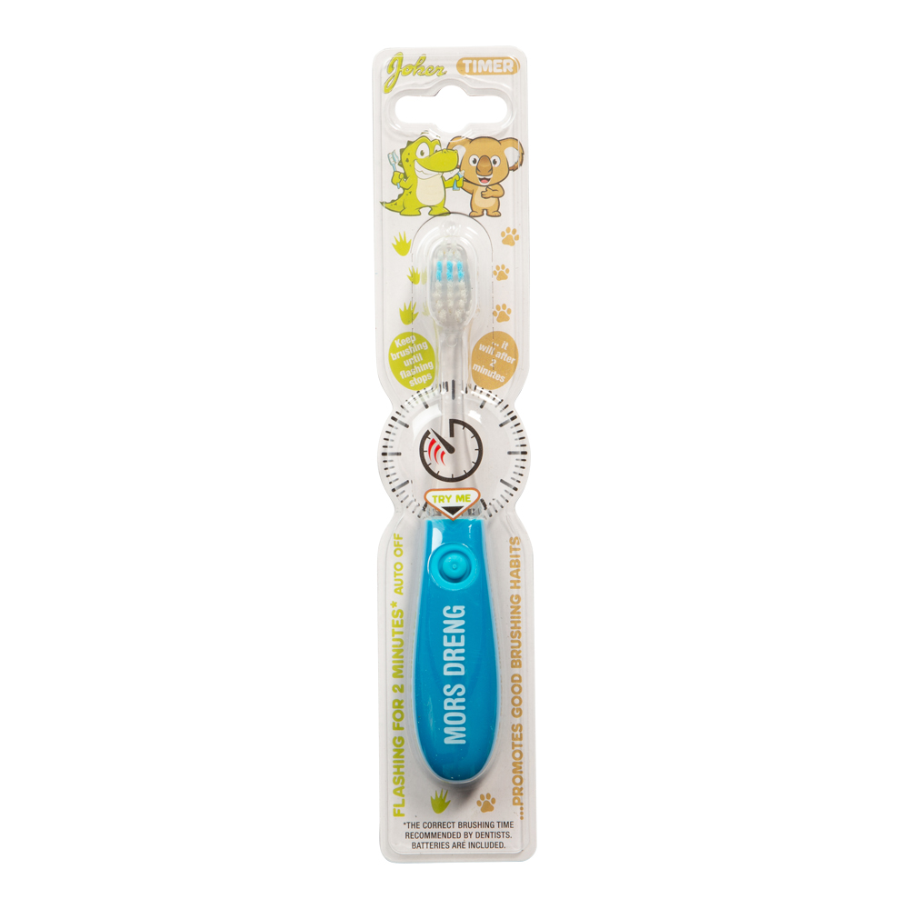 Fortsätt borsta tills blinkandet slutar. Tandborste anpassat för barn 3-6år. Med blinkande lampa i 2 minuter för att lära barnen att borsta tänderna längre och va mer nogranna. Tandläkaren rekommenderar att man byter tandborste var 3e månad. Endast till för att borsta tänderna med i vuxet sällskap.
