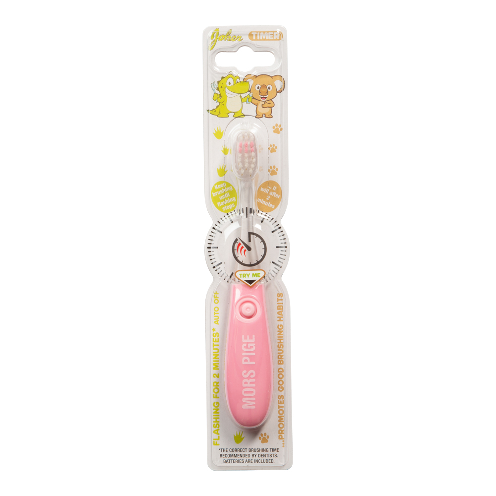 Fortsätt borsta tills blinkandet slutar. Tandborste anpassat för barn 3-6år. Med blinkande lampa i 2 minuter för att lära barnen att borsta tänderna längre och va mer nogranna. Tandläkaren rekommenderar att man byter tandborste var 3e månad. Endast till för att borsta tänderna med i vuxet sällskap.