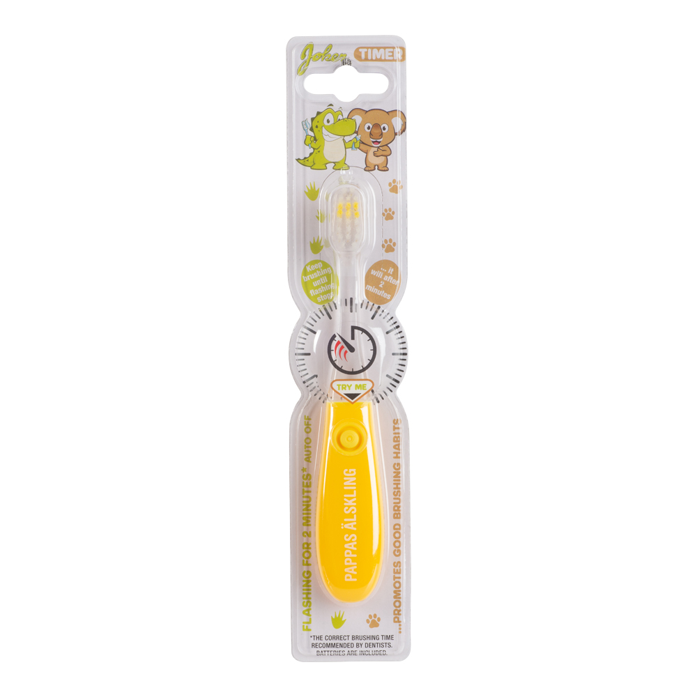 Fortsätt borsta tills blinkandet slutar. Tandborste anpassat för barn 3-6år. Med blinkande lampa i 2 minuter för att lära barnen att borsta tänderna längre och va mer nogranna. Tandläkaren rekommenderar att man byter tandborste var 3e månad. Endast till för att borsta tänderna med i vuxet sällskap.