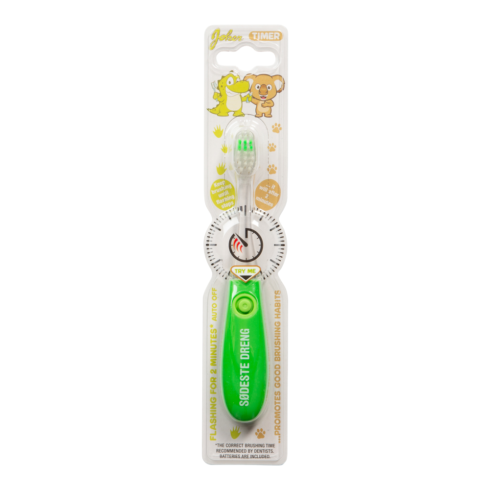 Fortsätt borsta tills blinkandet slutar. Tandborste anpassat för barn 3-6år. Med blinkande lampa i 2 minuter för att lära barnen att borsta tänderna längre och va mer nogranna. Tandläkaren rekommenderar att man byter tandborste var 3e månad. Endast till för att borsta tänderna med i vuxet sällskap.