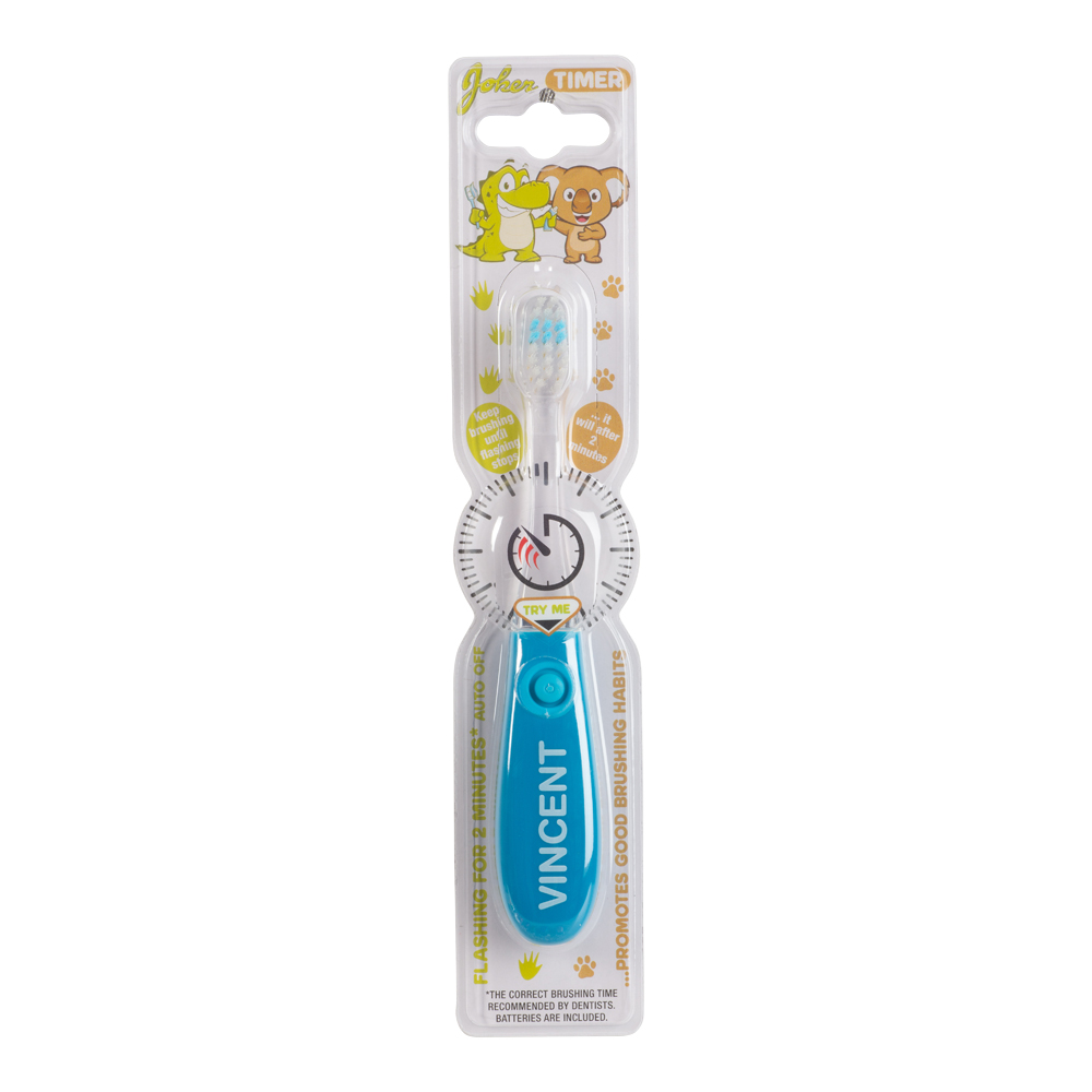 Fortsätt borsta tills blinkandet slutar. Tandborste anpassat för barn 3-6år. Med blinkande lampa i 2 minuter för att lära barnen att borsta tänderna längre och va mer nogranna. Tandläkaren rekommenderar att man byter tandborste var 3e månad. Endast till för att borsta tänderna med i vuxet sällskap.