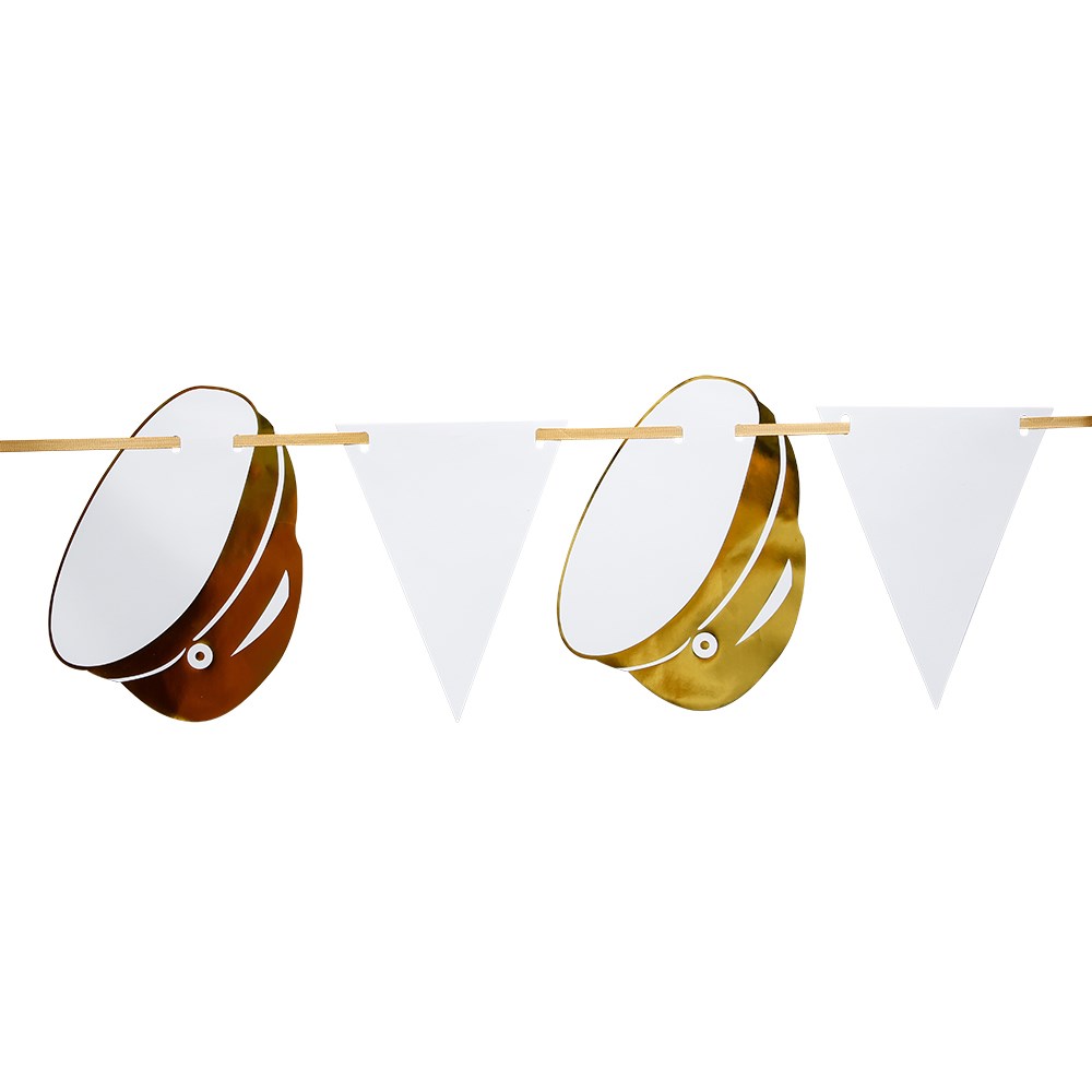 Snyggaste bannern för att smycka studentfesten i folie guld med texten "GRATTIS TILL STUDENTEN" och två studentmössor i början och slutet av texten.
