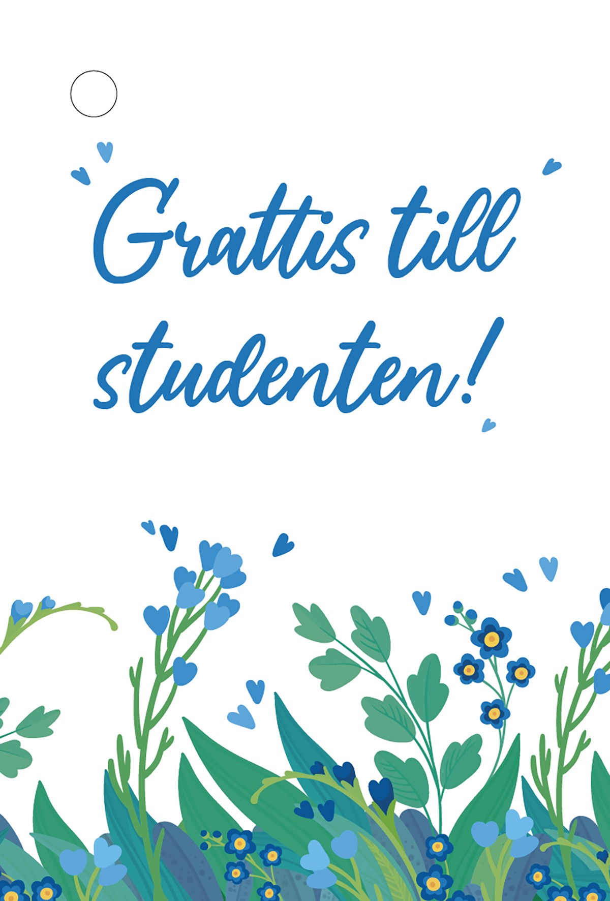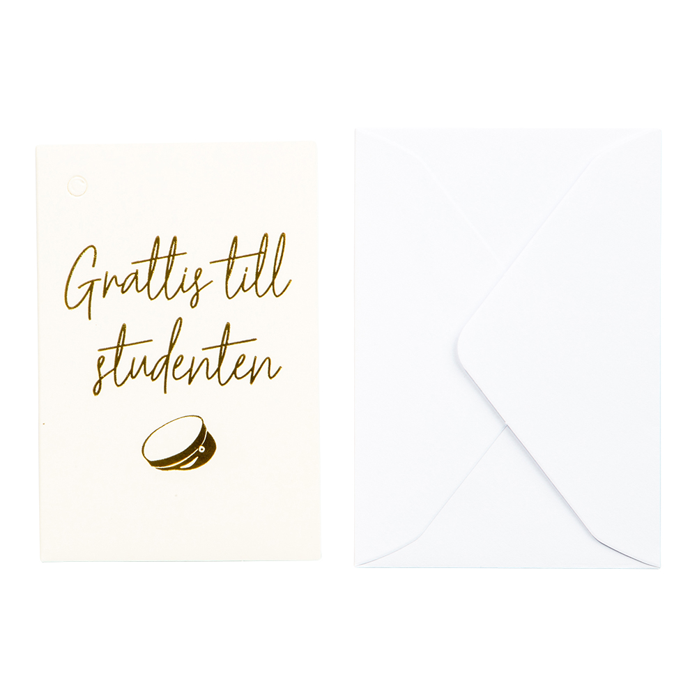 Minikort med hål i längst upp för att Gratta studenten.
