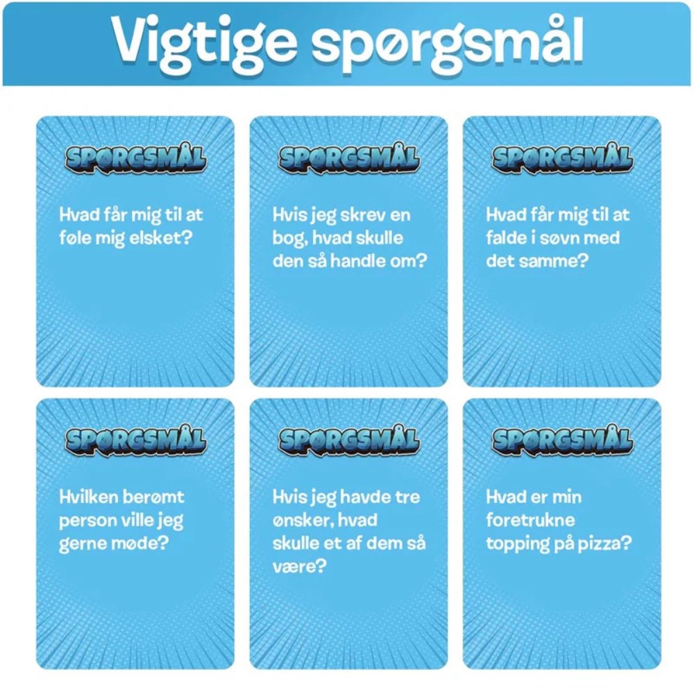 Når du trækker et spørgsmålskort, læs spørgsmålet for dig selv og bestem dit svar. Derefter læser du spørgsmålet højt, så alle kan høre det. Den første person, der gætter det rigtige svar, får beholde kortet. Hvis ingen kan gætte det rigtige svar, kan du give ledetråde. Hvis flere personer gætter rigtigt samtidig, vælger du, hvem der skal have kortet.