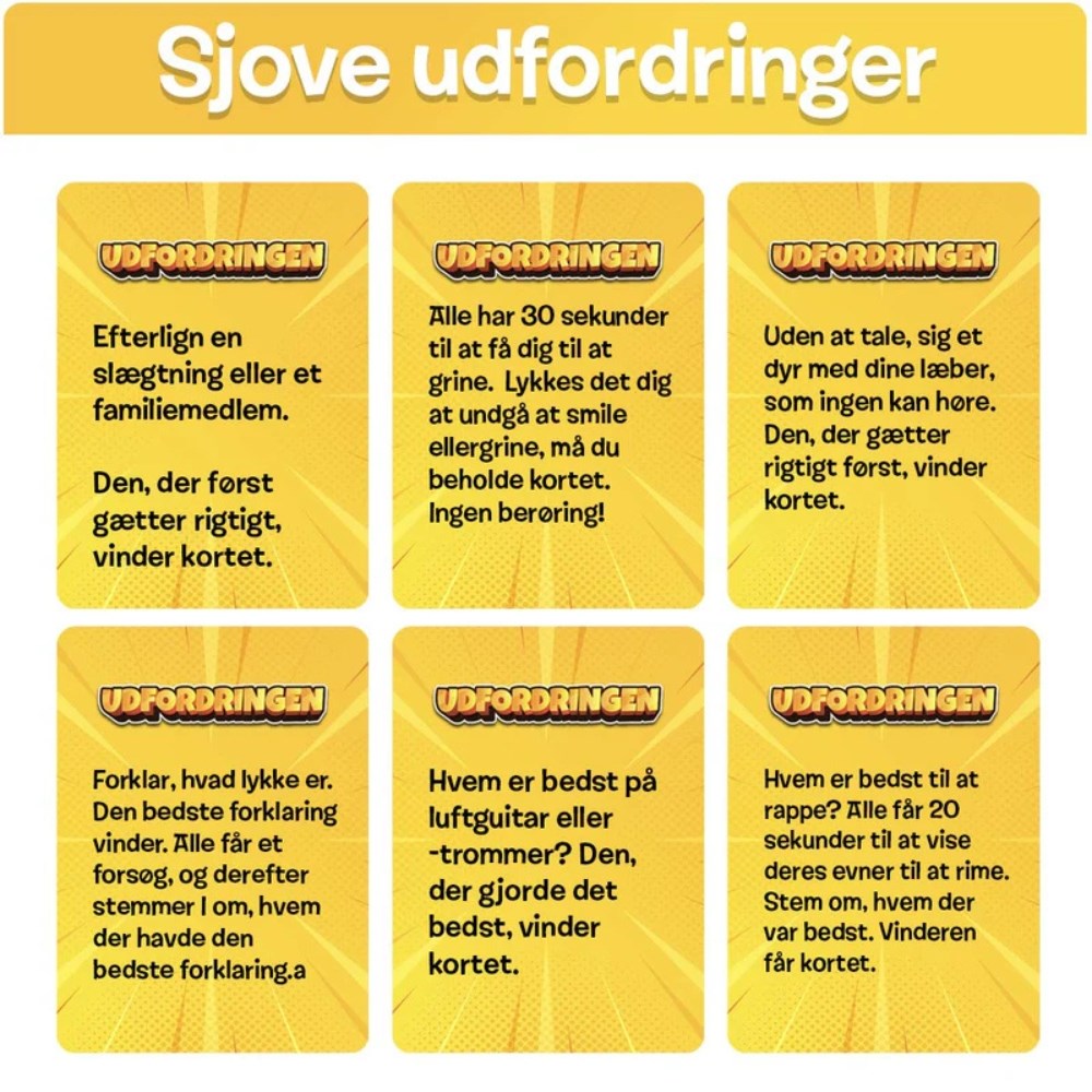 Når en person trækker et udfordringskort, skal de læse udfordringen højt, så alle kan høre det. Hvis nogen lykkes med udfordringen, får de beholde kortet. Hvis ingen lykkes eller ønsker at tage udfordringen, kasseres kortet.