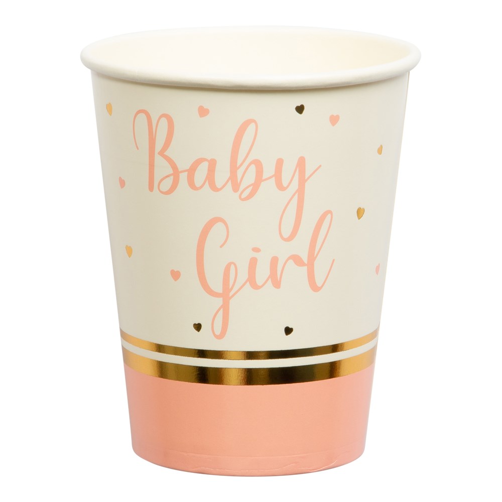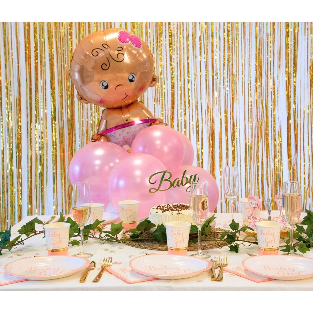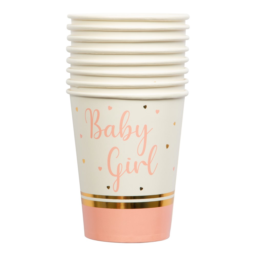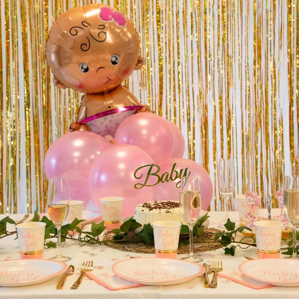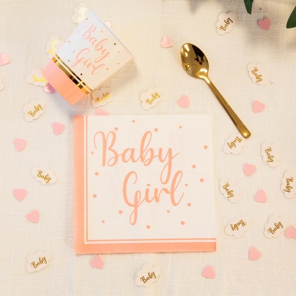 Supersöt dukningsserie med Baby Girl-tema som passar utmärkt till Baby Shower, dop, namngivelse eller 1-års kalas. Den inbjudande rosa färgen bidrar till en varm och härlig stämning. Dukningsserien består av cake-picks, muggar, servetter, tallrikar och konfetti. Artiklarna är gjoda av hållbart papper.