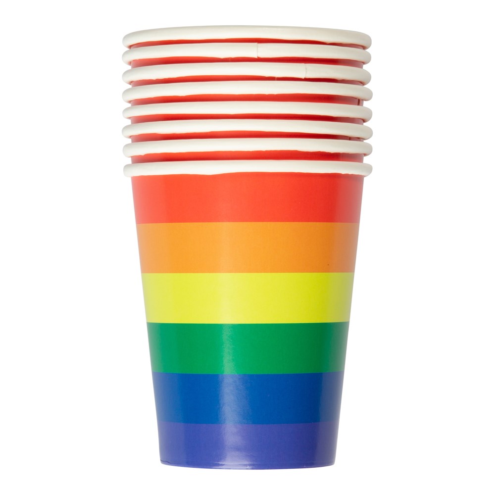 8 st pappersmuggar som passar perfekt till festen, födelsedagen eller varför inte för att fira pride. Rymmer 26 cl. Mått: 9 cm hög