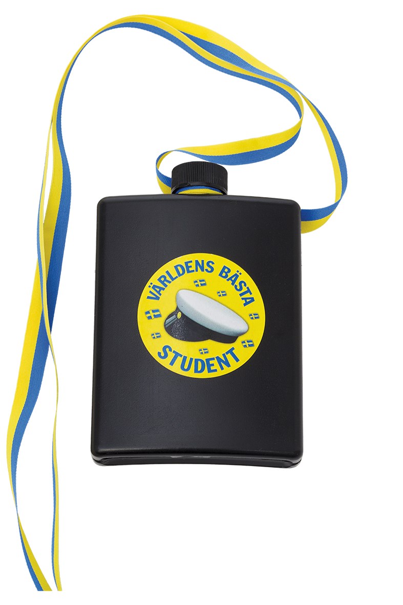 Chokladmedalj med texten GRATTIS TILL STUDENTEN. Denna godbit passar utmärkt när den stora examensdagen äntligen är kommen. Med sin eleganta guldfärg och blågula snöre passar chokladmedaljen utmärkt runt studentens hals. Dessutom, när hungern väl faller in blir denna eminenta studentdetalj en härlig mumsbit av utsökt choklad.
