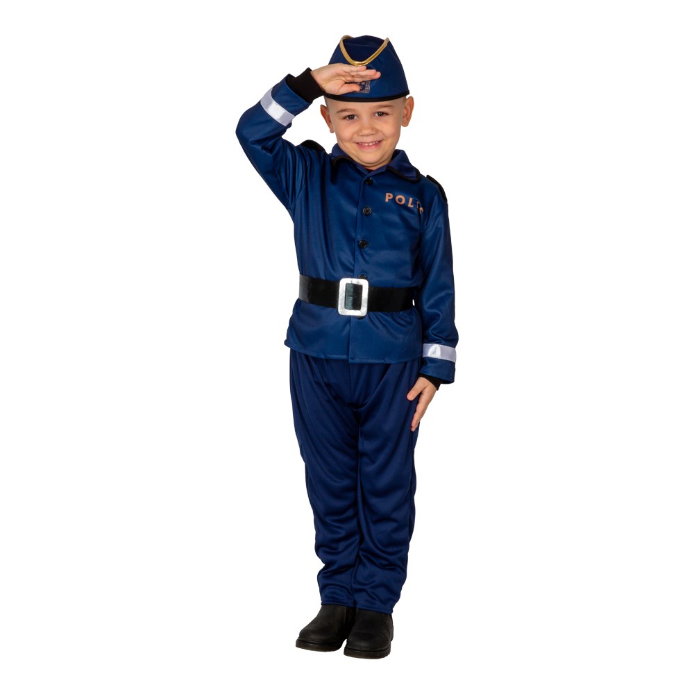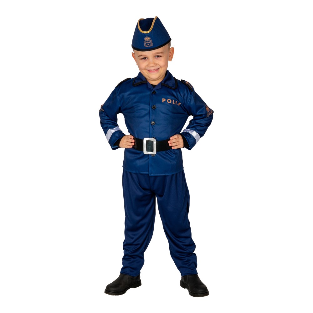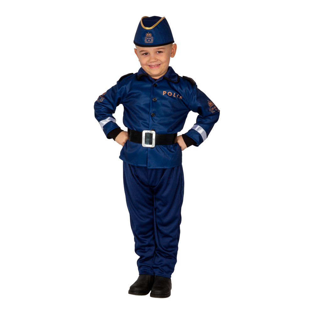 Polisdräkt innehållande Skjorta, byxor, bälte samt hatt.