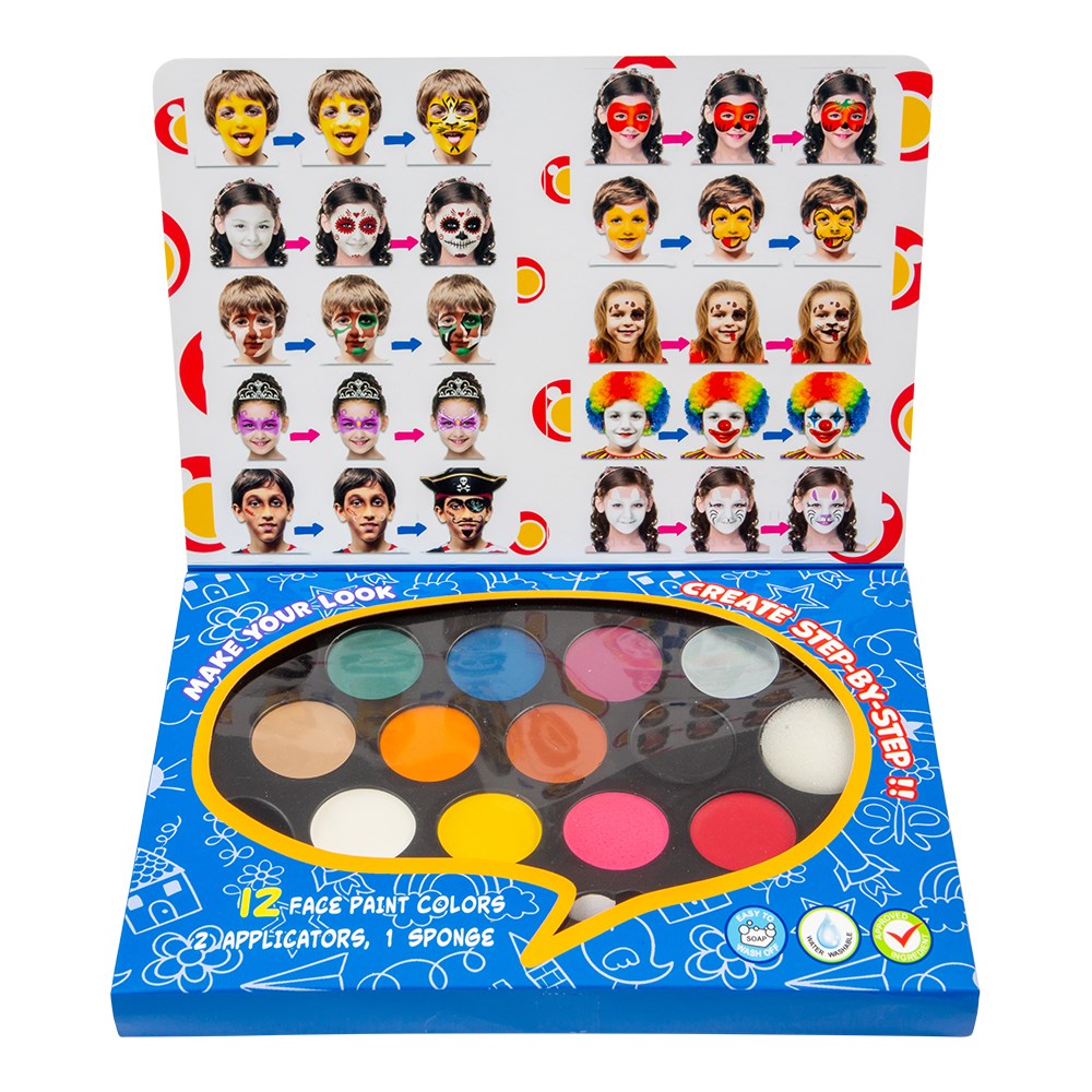 12 Color face paint (water Washable), 2 applicators, 1 sponge