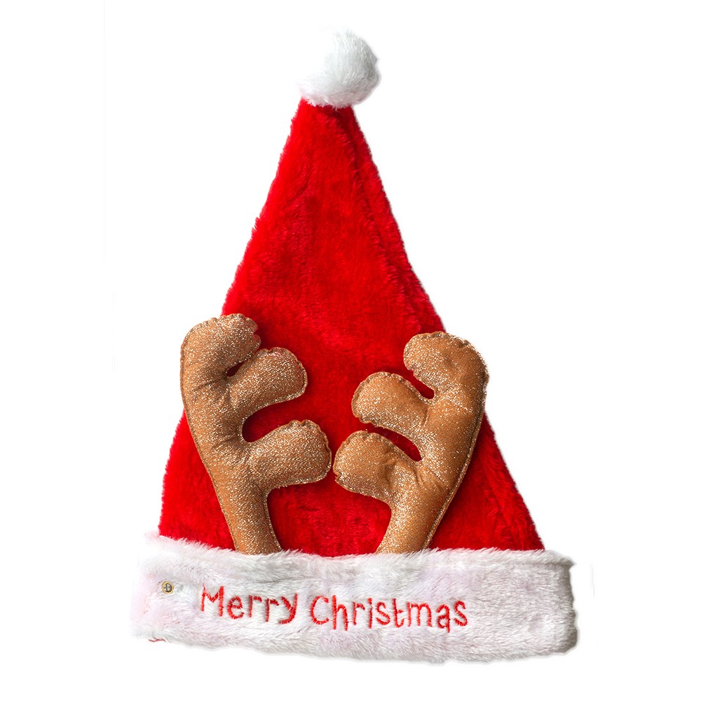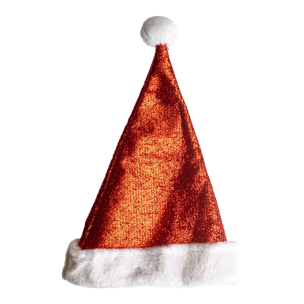 Röd tomteluva med bjällror på, och ett gulligt skärp.