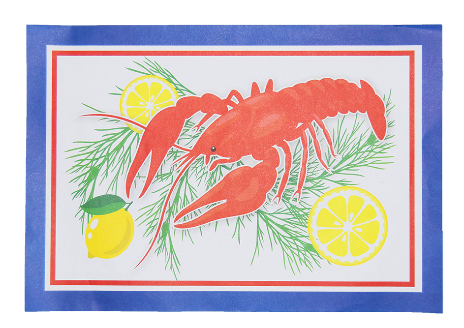 8 st bordtabletter/underlägg med kräftmotiv. 40,6 x 28 cm. FSC papper