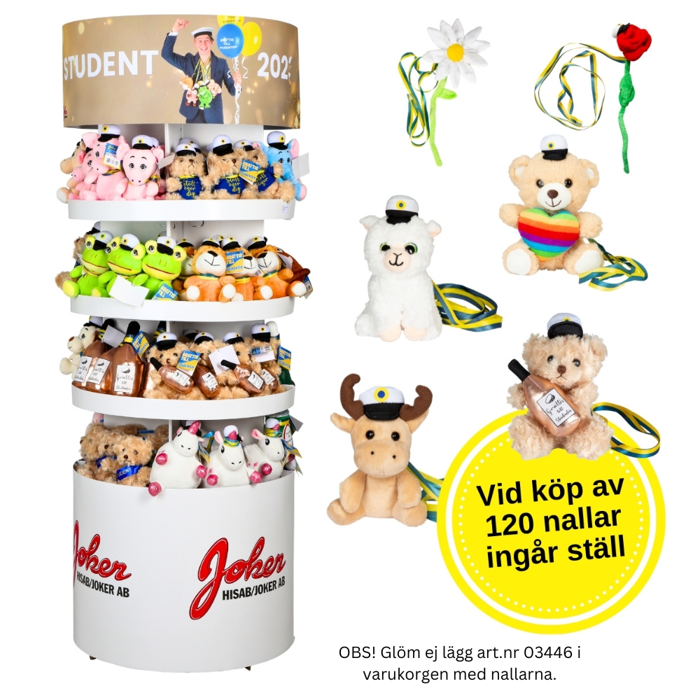 Köp minst 120 st studentnallar och pappstället ingår. Lägg gärna stället och nallarna på en order så är det lättare för oss att hantera din order.