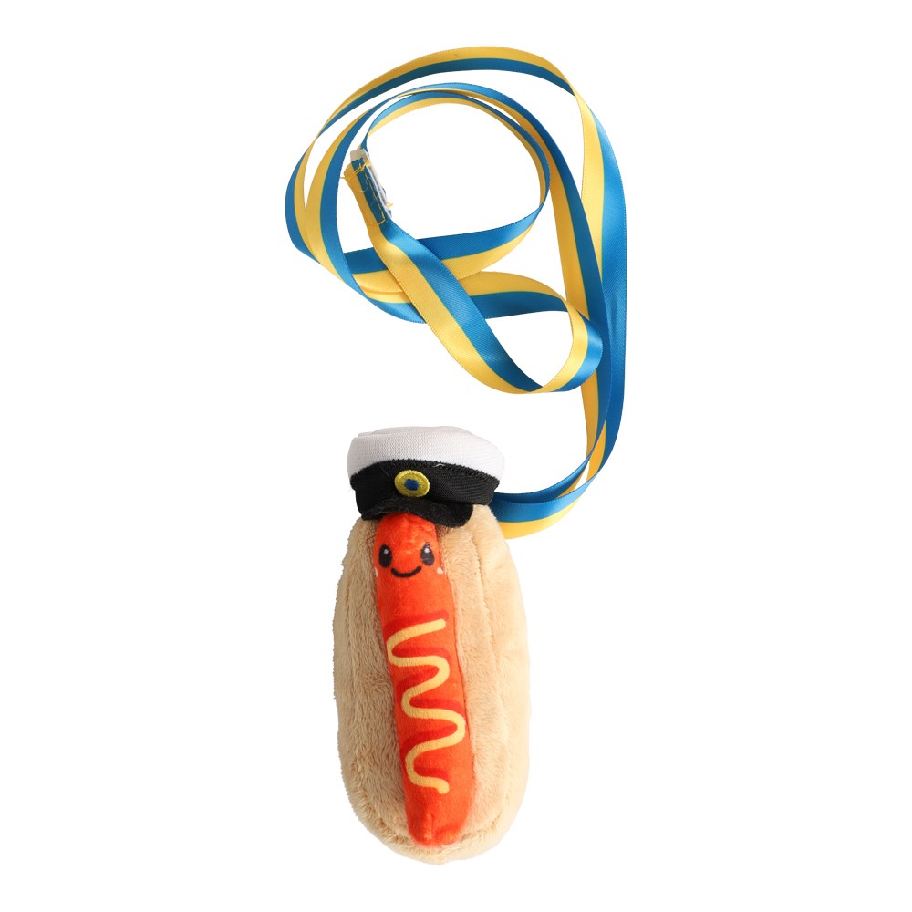Mjukisnalle i form av korv i bröd att ge bort till studenten.
